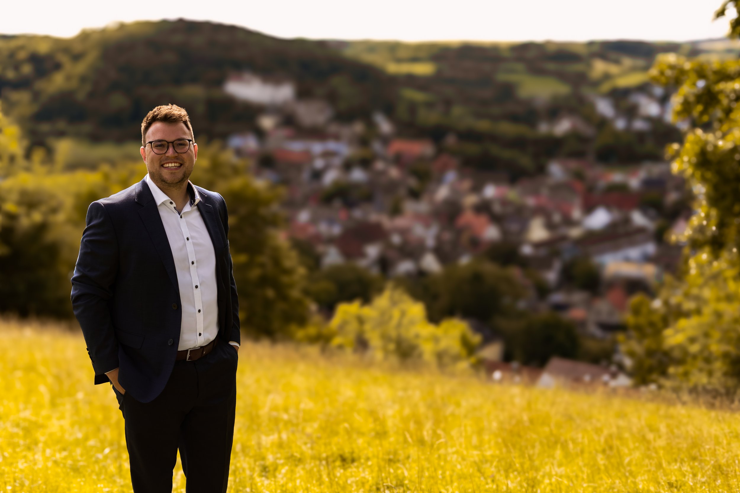 Mein Name ist Sebastian Mayer, ich bin 30 Jahre alt, Verwaltungsfachwirt und Leiter des Bauamts in Niederstetten. Aufgewachsen im Weiler Heimberg, kenne ich unsere Stadt von Kindesbeinen an – vom Kindergarten über die Schule bis hin zum Vereinsleben. Neben meiner beruflichen Verantwortung engagiere ich mich ehrenamtlich im Kreistag, bei der Freiwilligen Feuerwehr und in Vereinen.
